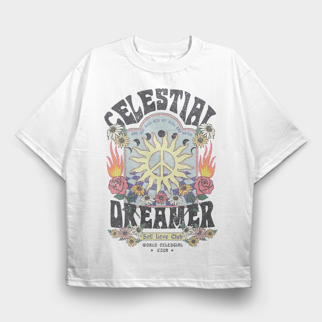 Celestial Dreamer Blooms, Tricou Oversize Barbati (Unisex)