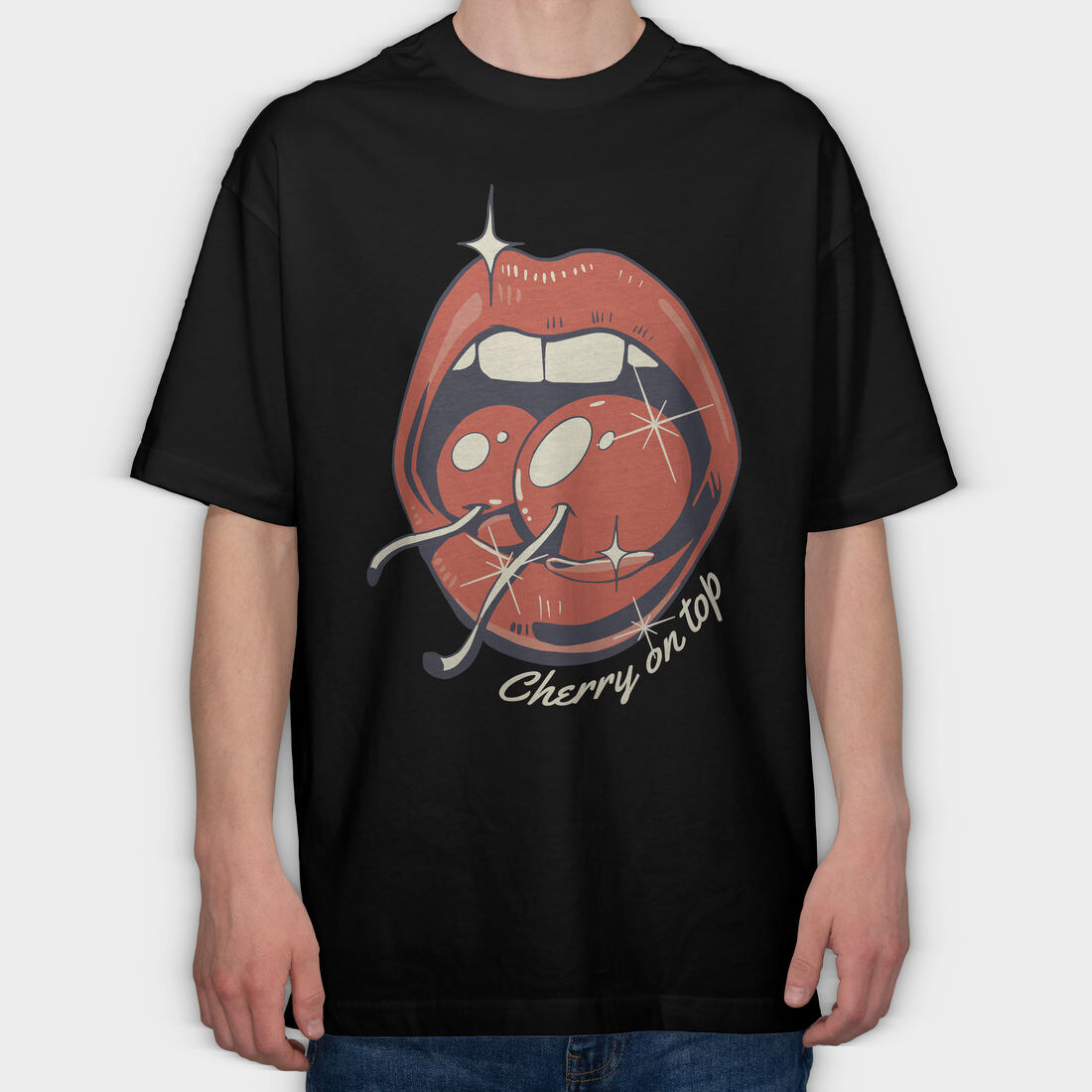 Cherry On Top Lips Kitsch, Tricou Oversize Barbati (Unisex)