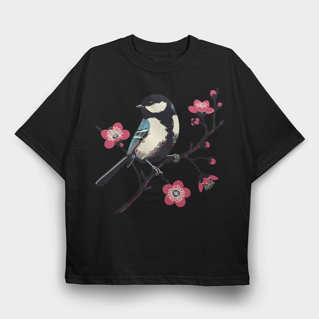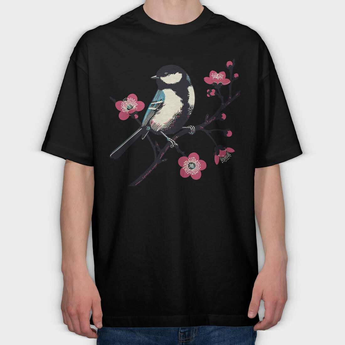 Chickadee On Blossom, Tricou Oversize Barbati (Unisex)