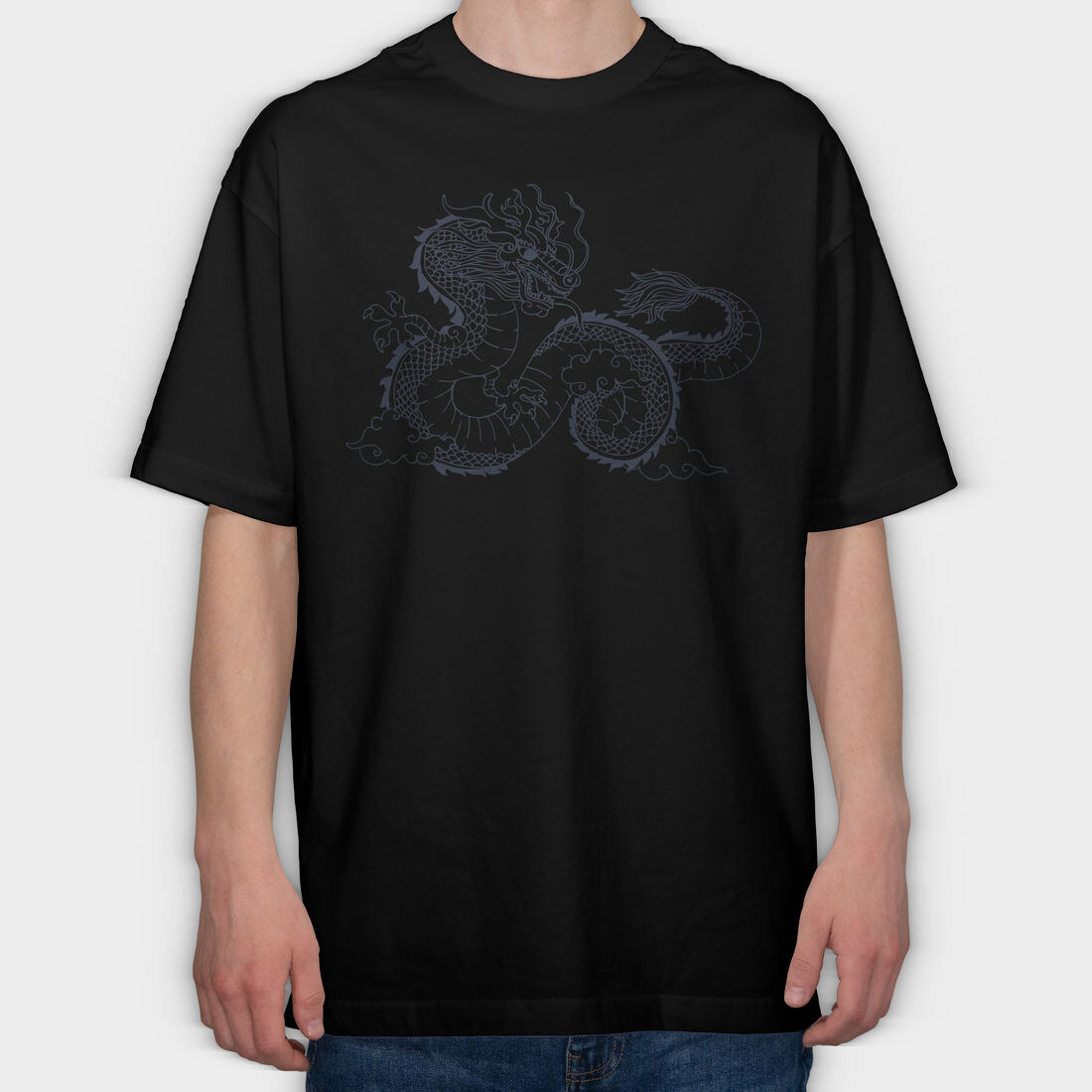 Chinese Dragon Illustration, Tricou Oversize Barbati (Unisex)