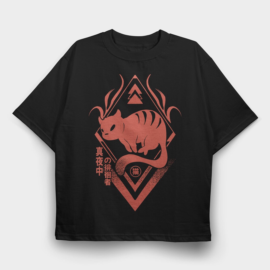 Chinese Zodiac Cat Dark Animals, Tricou Oversize Barbati (Unisex)