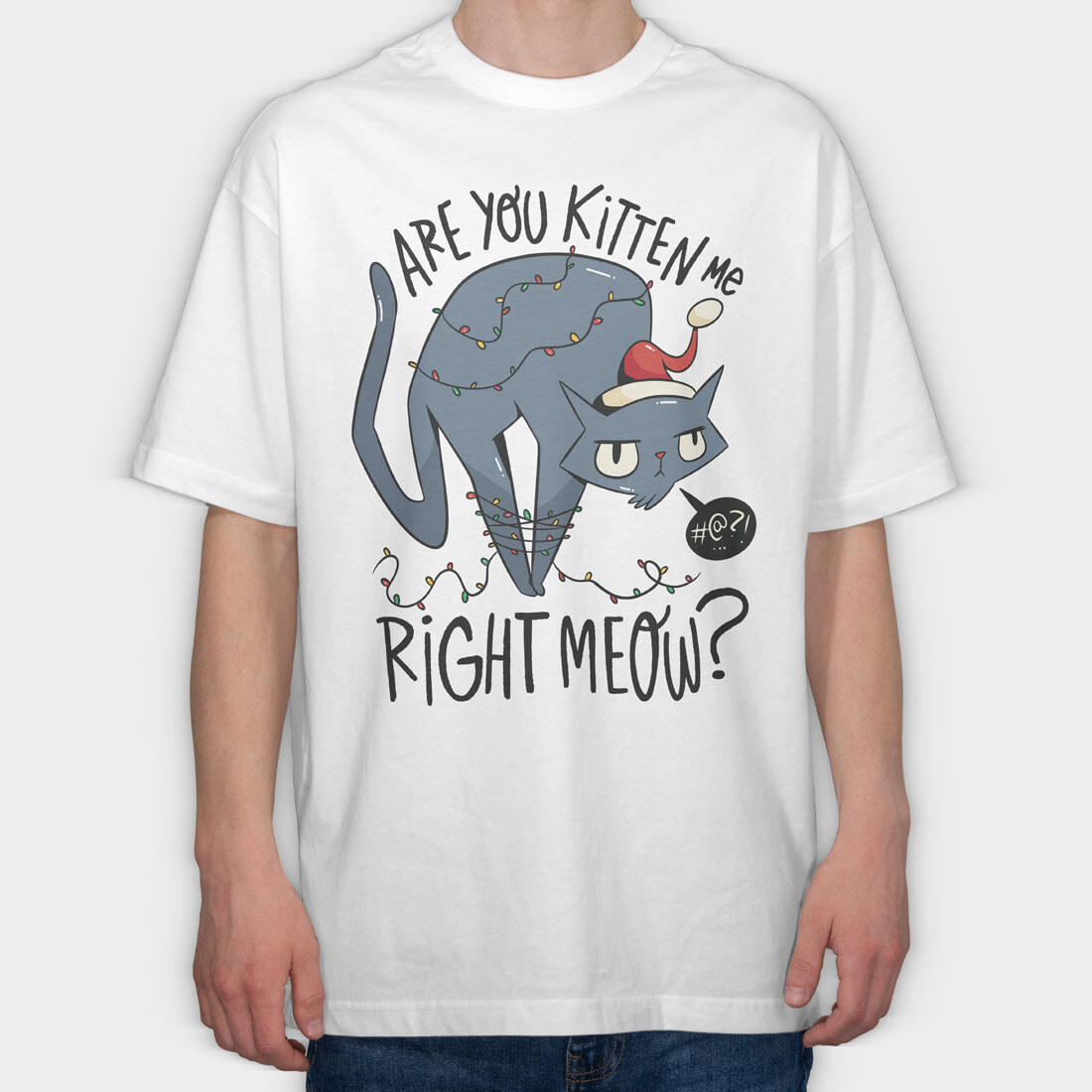 Christmas Angry Cat, Tricou Oversize Barbati (Unisex)