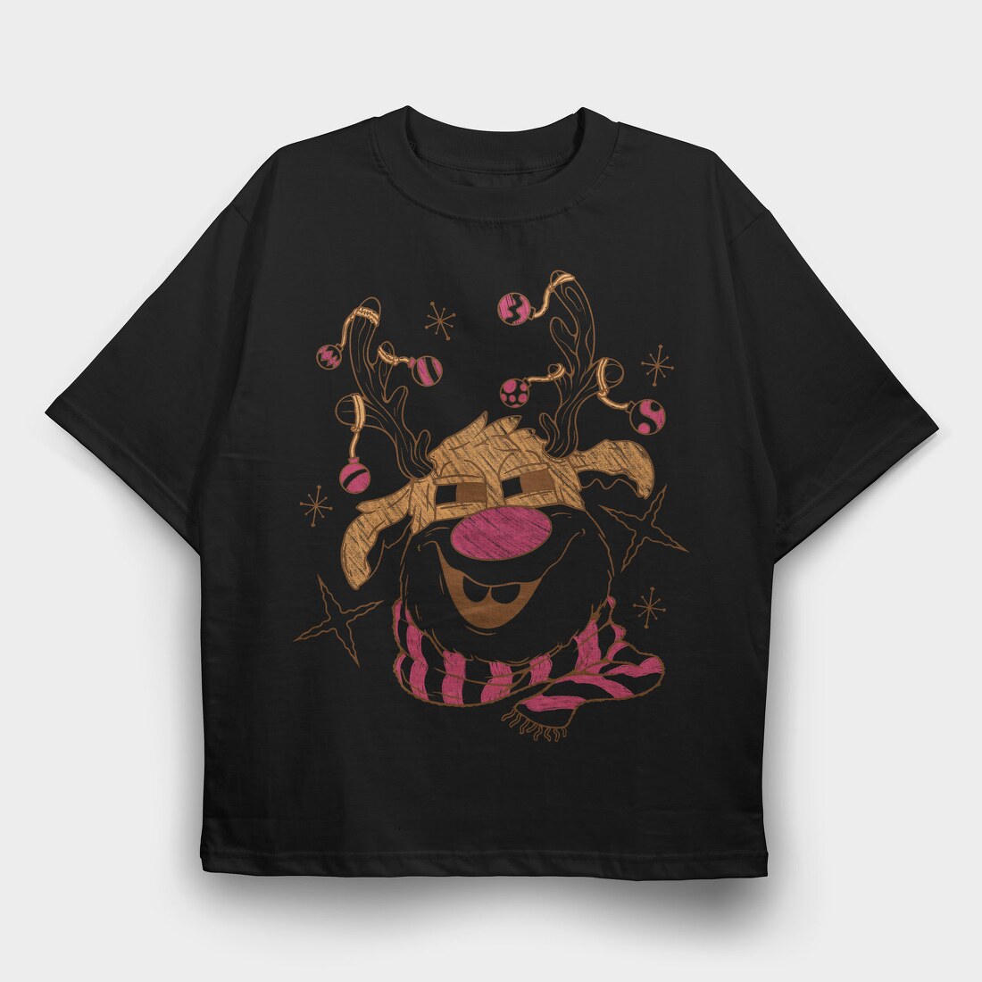 Christmas Cartoon Reindeer, Tricou Oversize Barbati (Unisex)