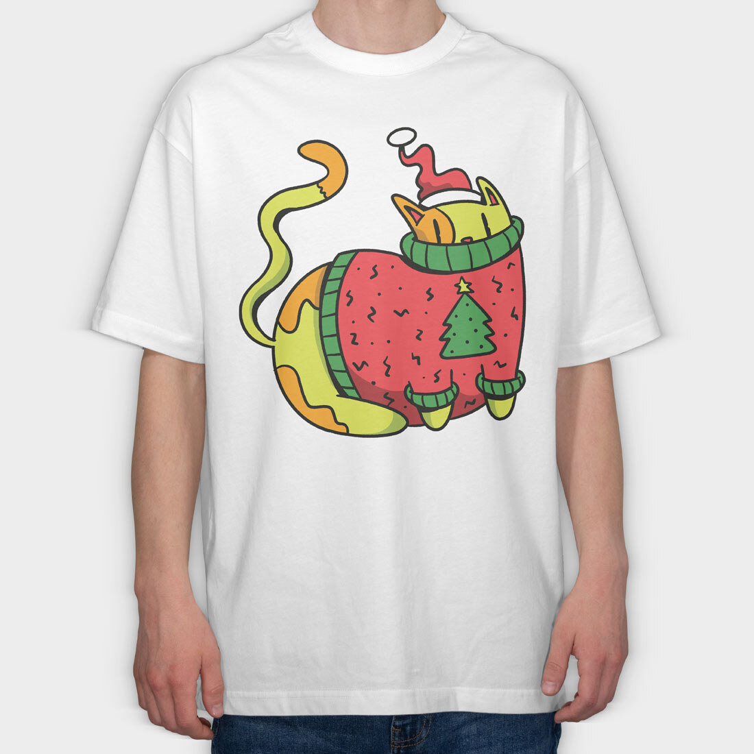 Christmas Cat Sweater, Tricou Oversize Barbati (Unisex)