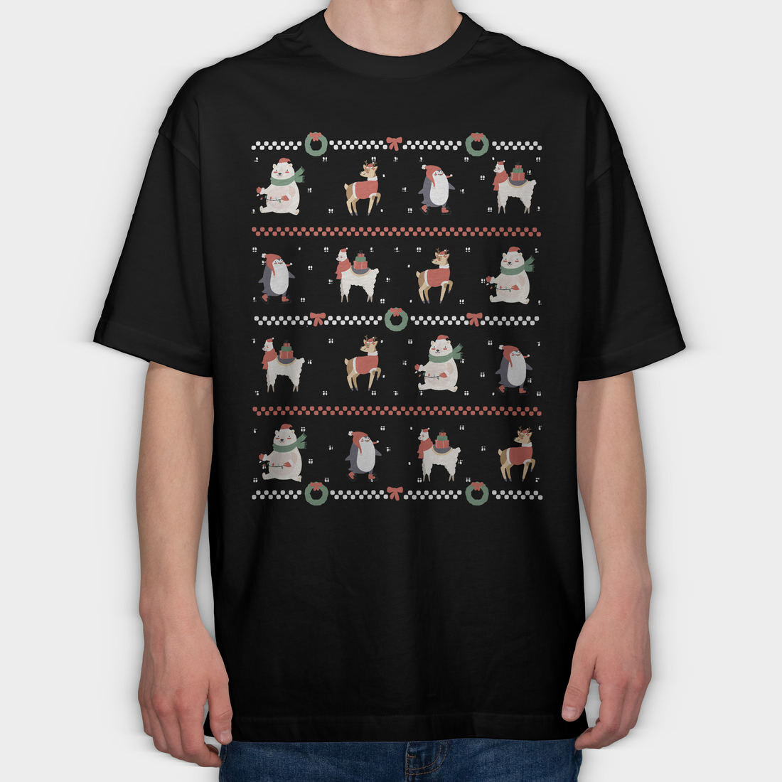 Christmas Characters Sweater Ugly Animals, Tricou Oversize Barbati (Unisex)