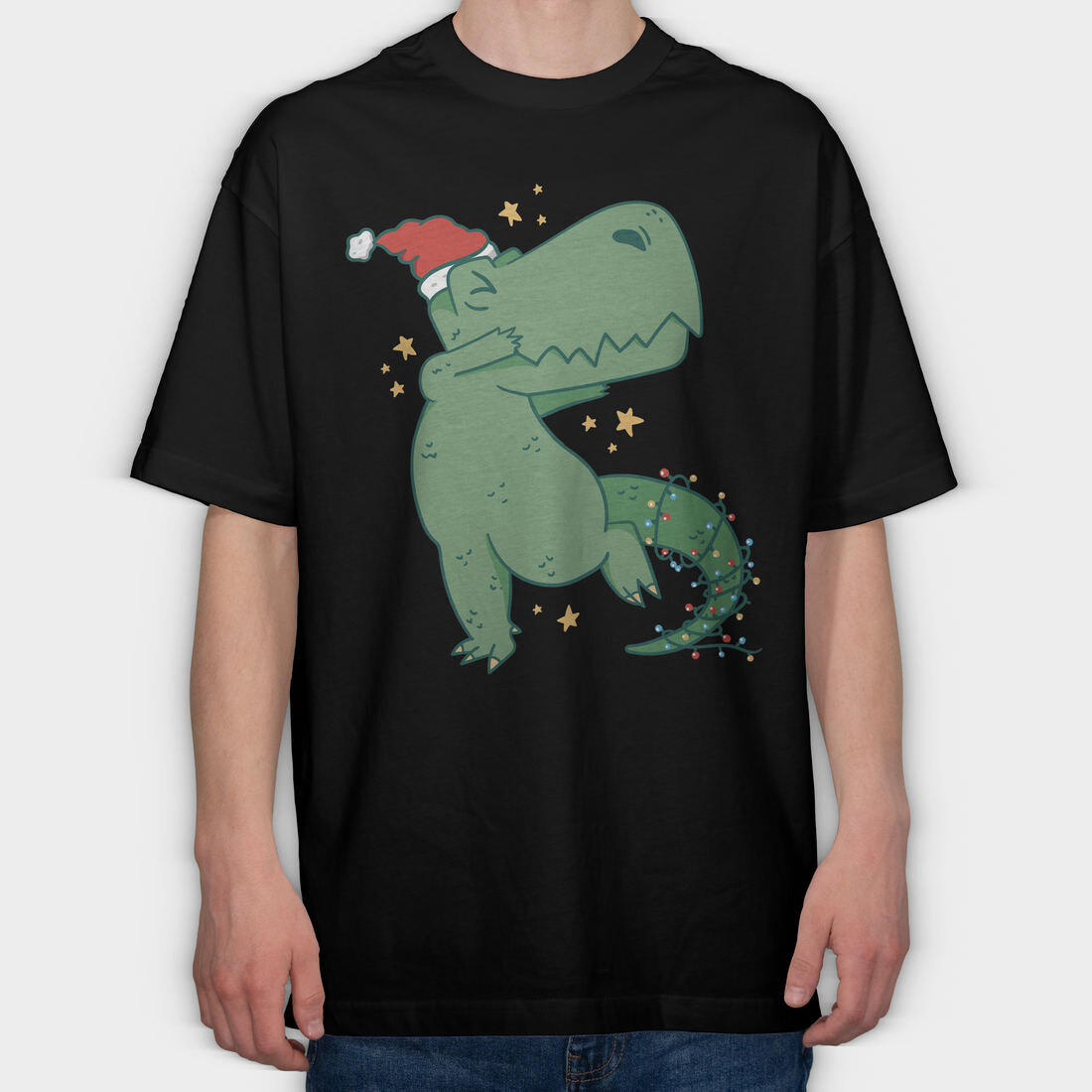 Christmas T Rex Fun Dab, Tricou Oversize Barbati (Unisex)
