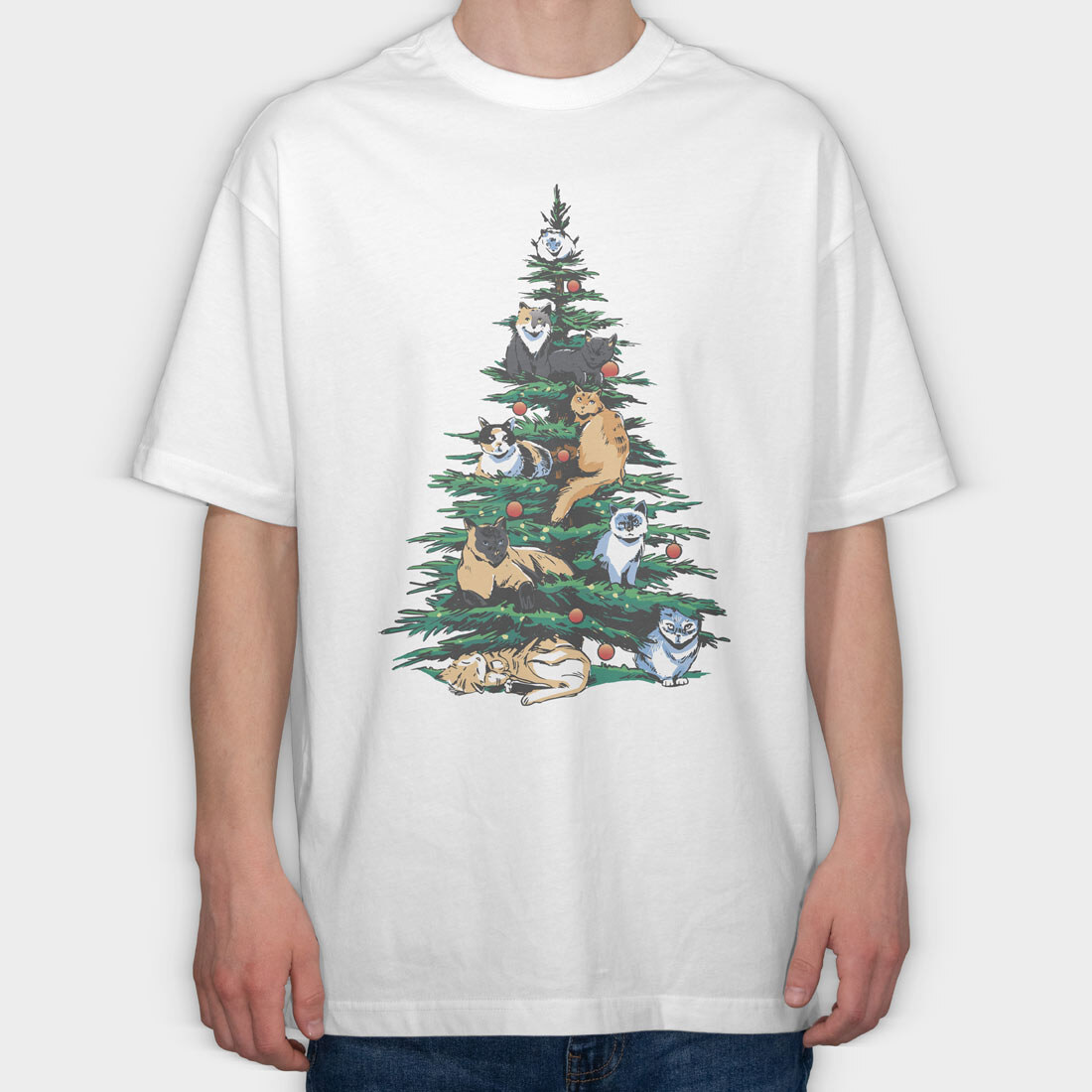 Christmas Tree Cats Realistic, Tricou Oversize Barbati (Unisex)