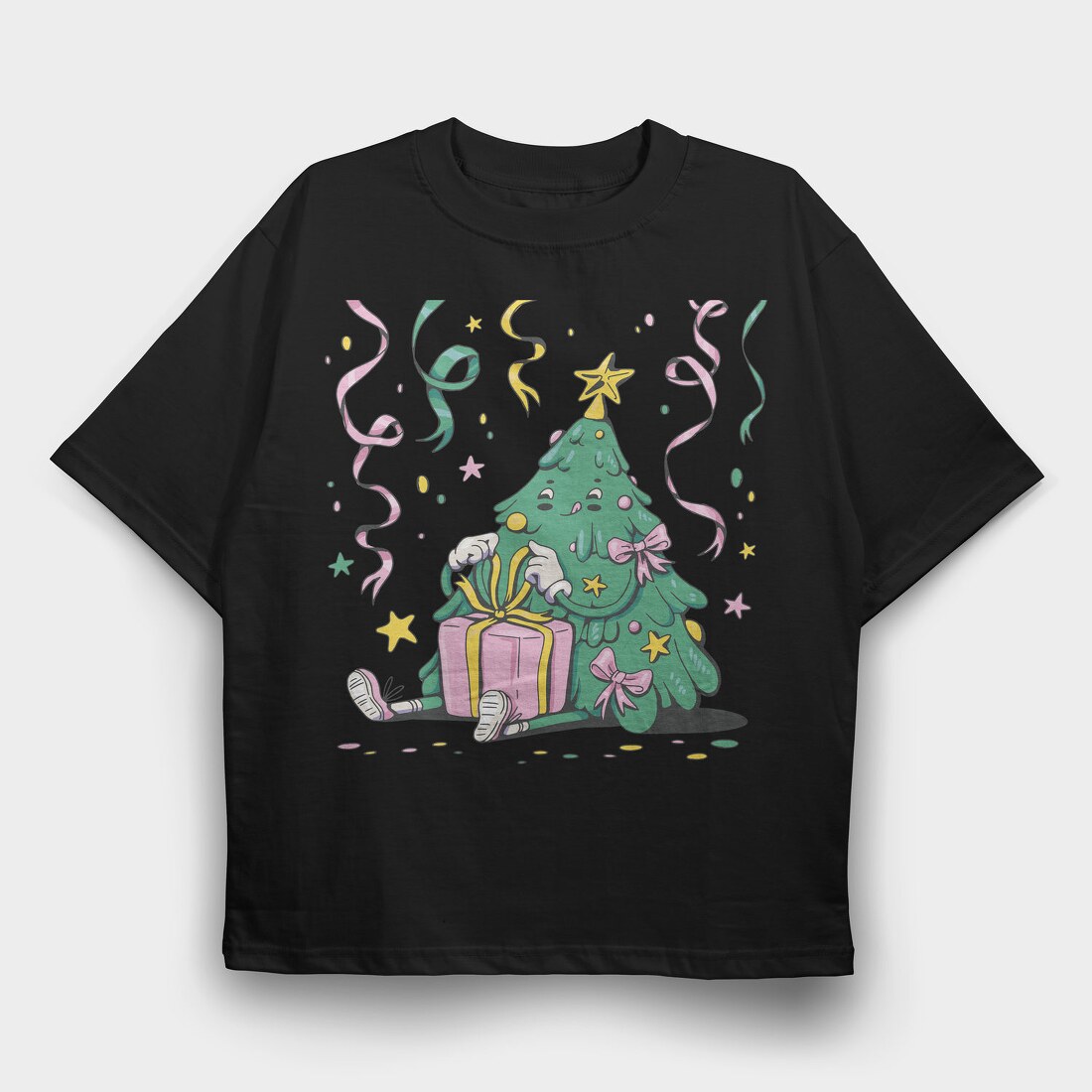 Christmas Tree New Year Character Present Pillow, Tricou Oversize Barbati (Unisex)