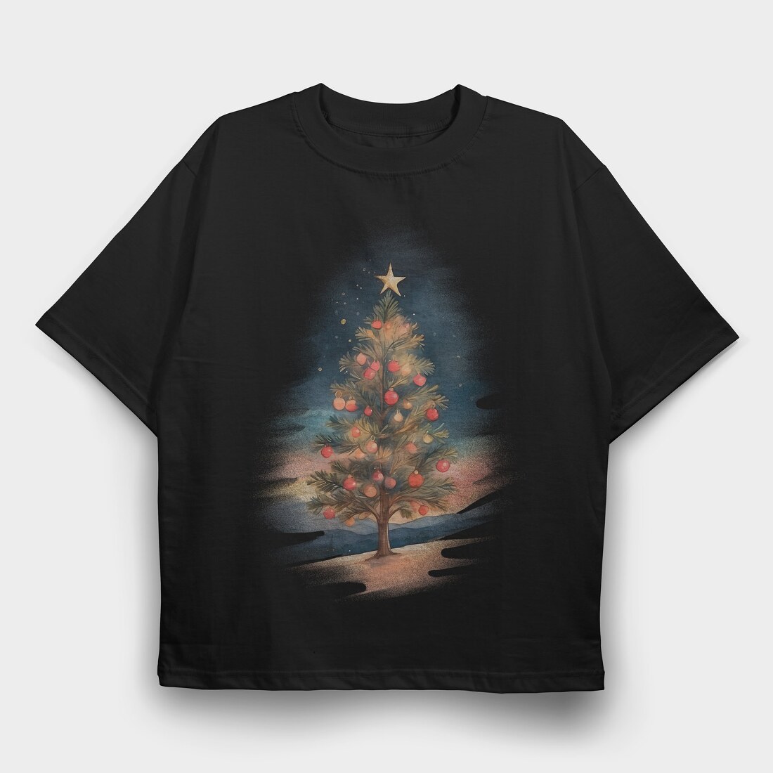 Christmas Tree Watercolor, Tricou Oversize Barbati (Unisex)
