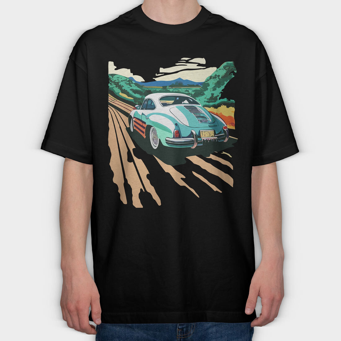 Classic Car Trees Landscape Retro, Tricou Oversize Barbati (Unisex)