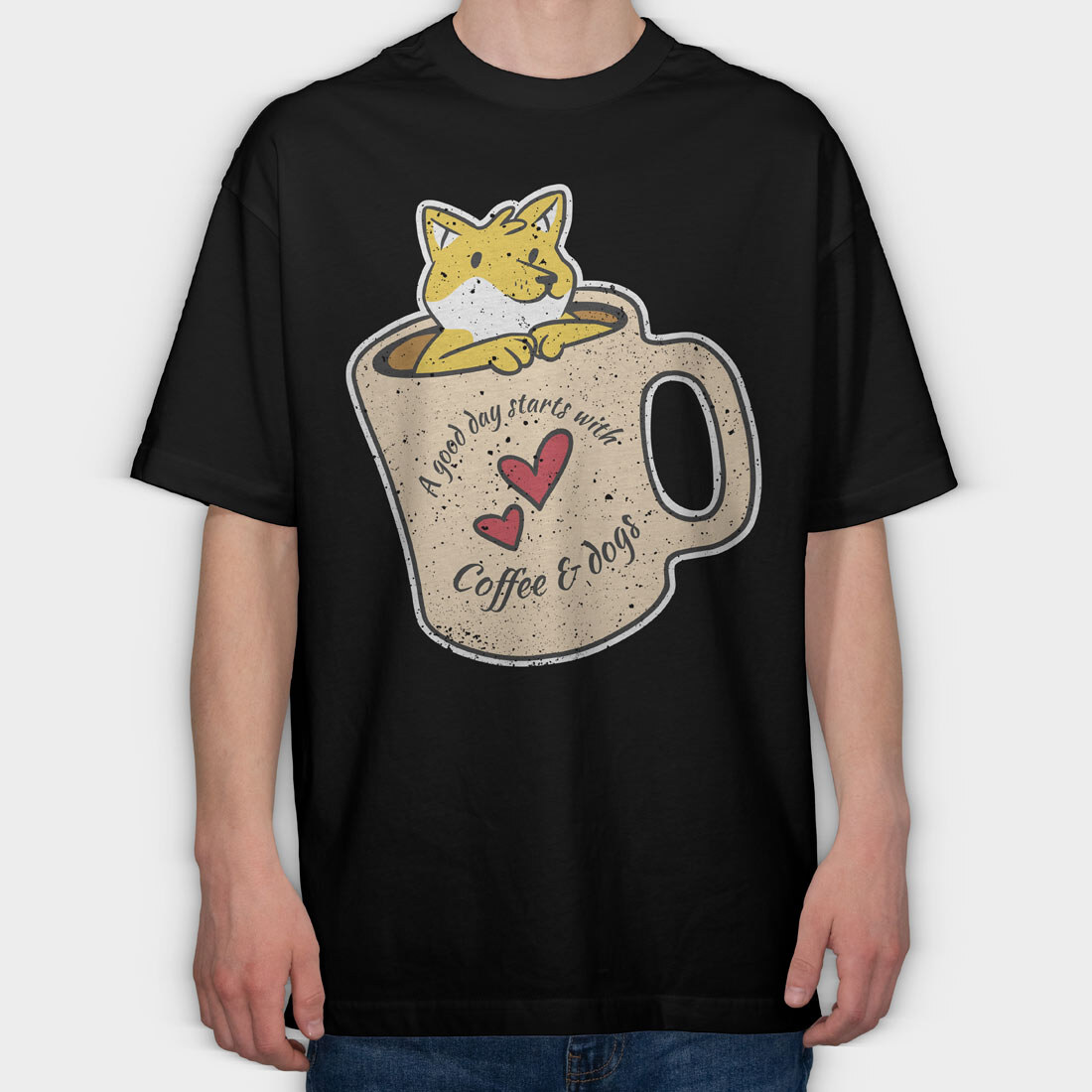 Coffee and Dogs, Tricou Oversize Barbati (Unisex)