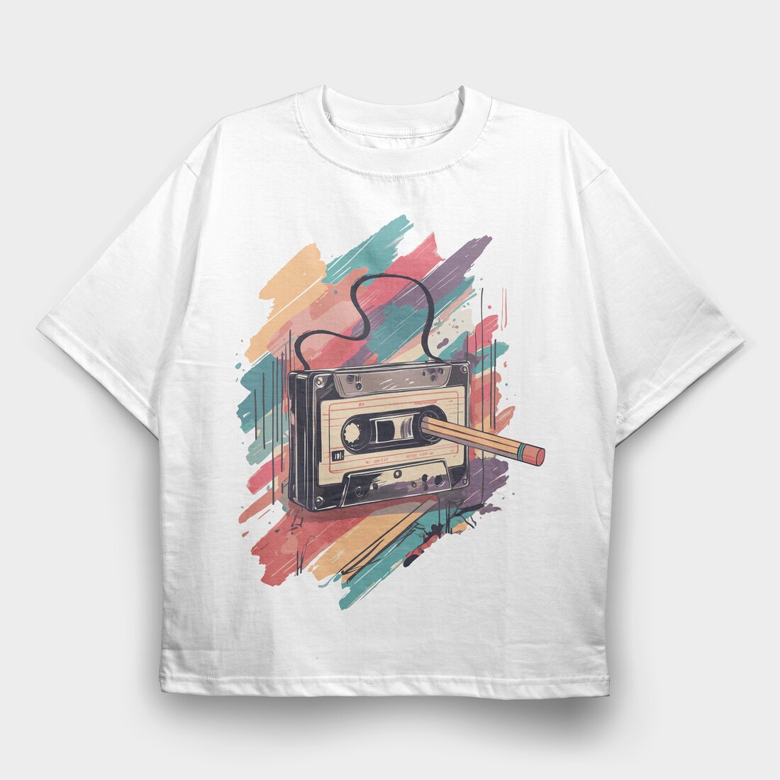 Colorful Cassette Pencil Retro, Tricou Oversize Barbati (Unisex)