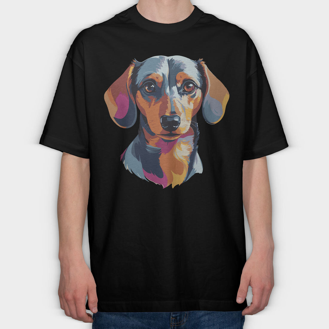 Colorful Dachshund Portrait, Tricou Oversize Barbati (Unisex)