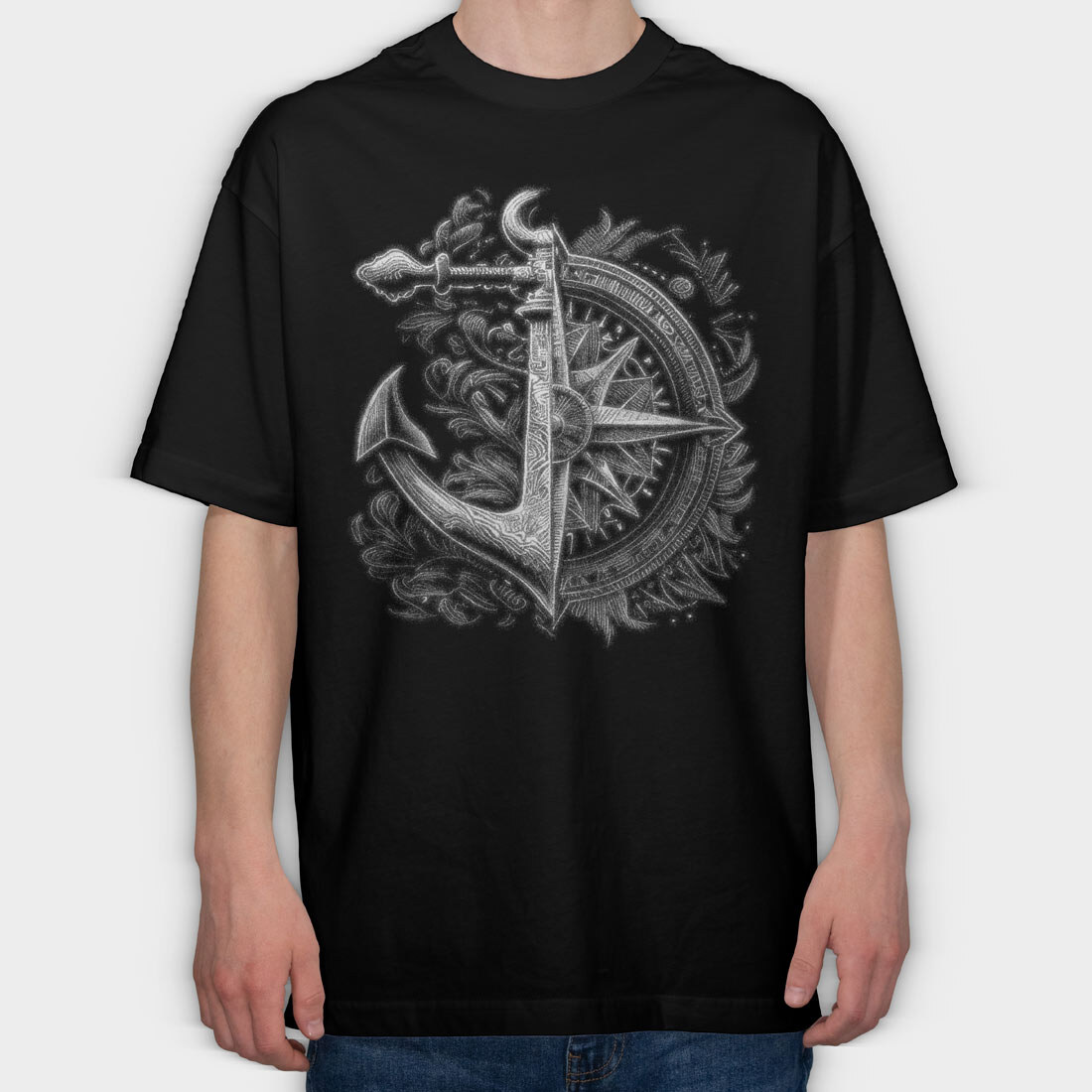 Compass Anchor, Tricou Oversize Barbati (Unisex)