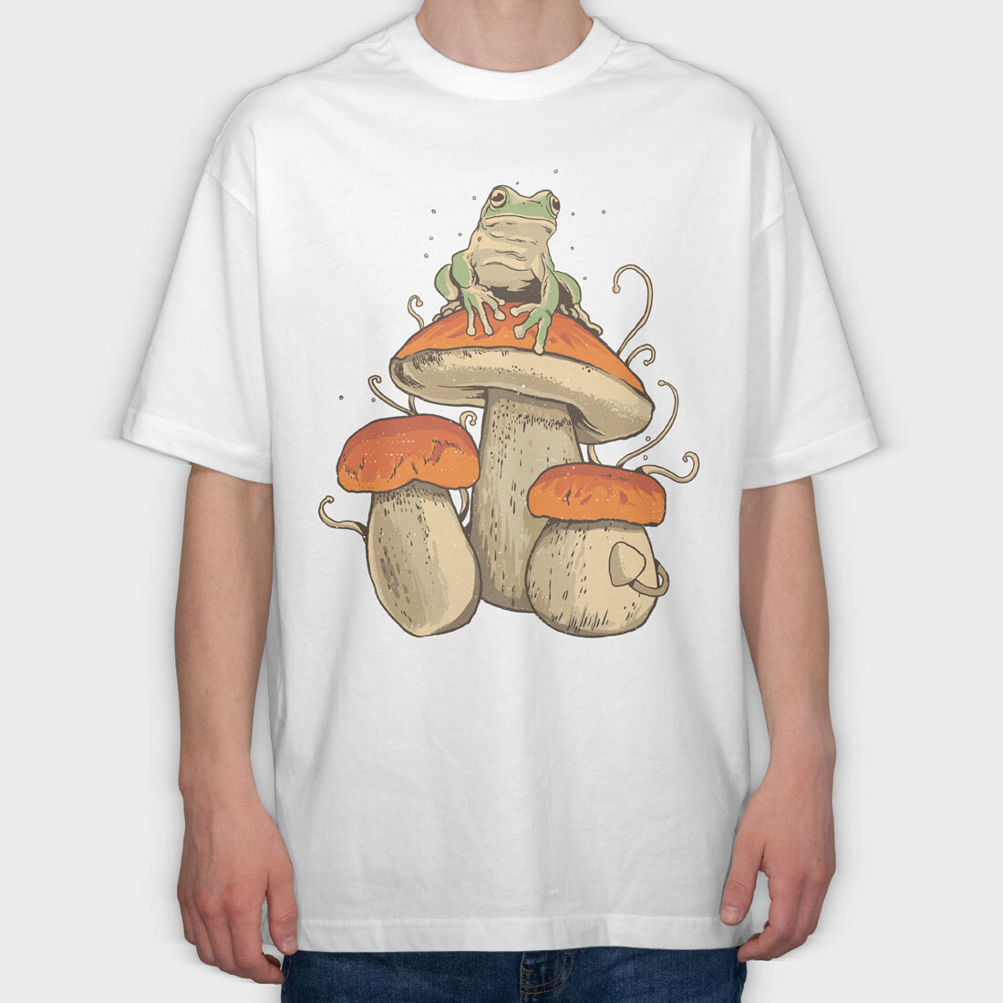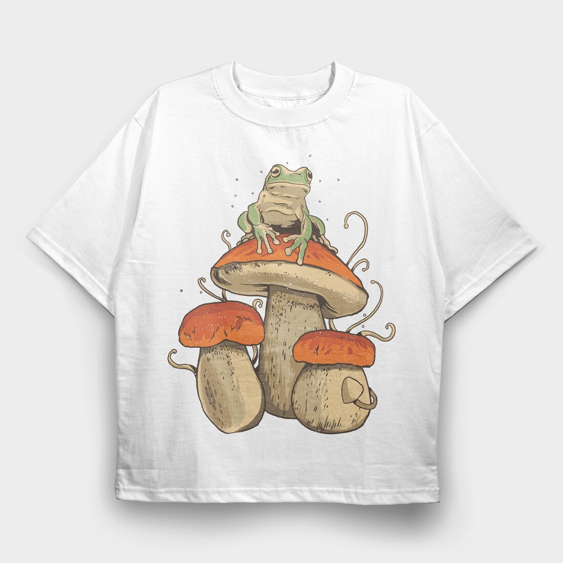 Cottagecore Mushroom Frog, Tricou Oversize Barbati (Unisex)