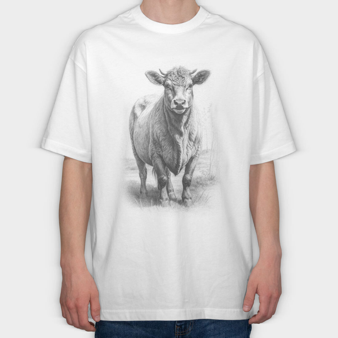 Cow Hand Drawn Style Braunvieh, Tricou Oversize Barbati (Unisex)