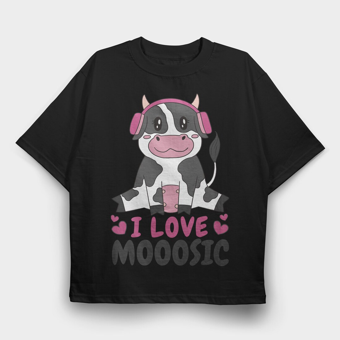 Cow With Headphones I Love Moosic, Tricou Oversize Barbati (Unisex)