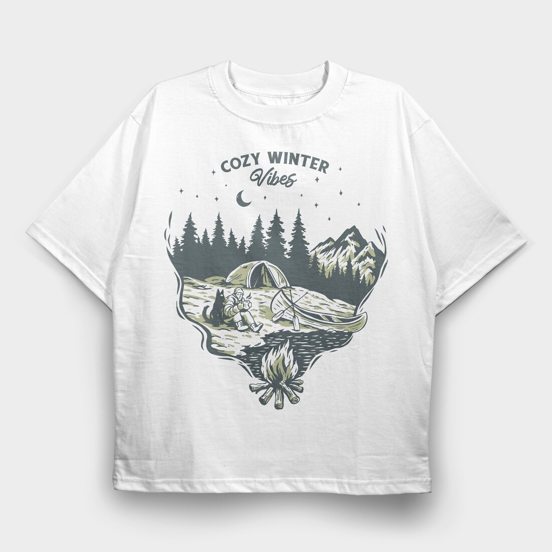Cozy Winter Vibes Camping, Tricou Oversize Barbati (Unisex)