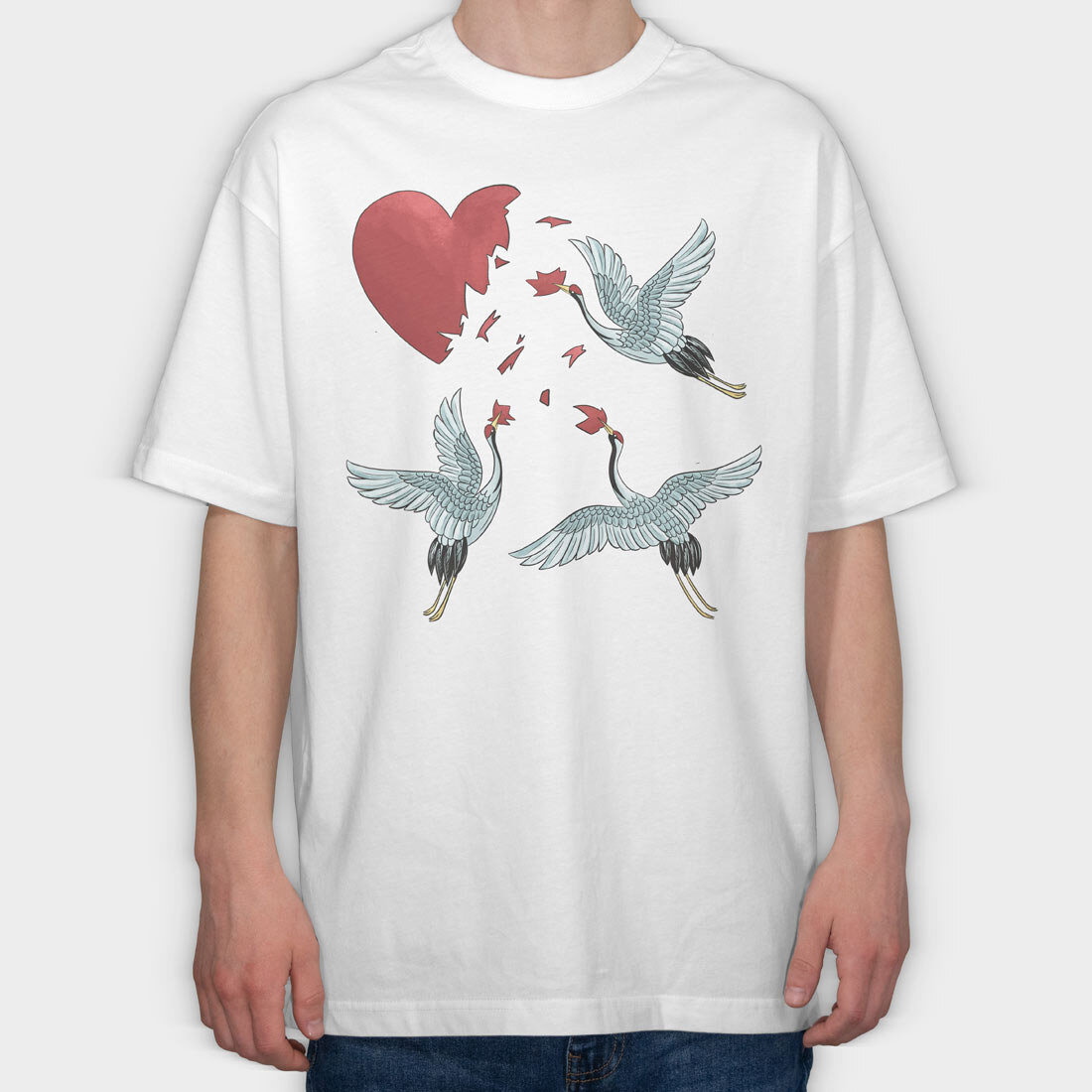 Crane Broken Heart, Tricou Oversize Barbati (Unisex)