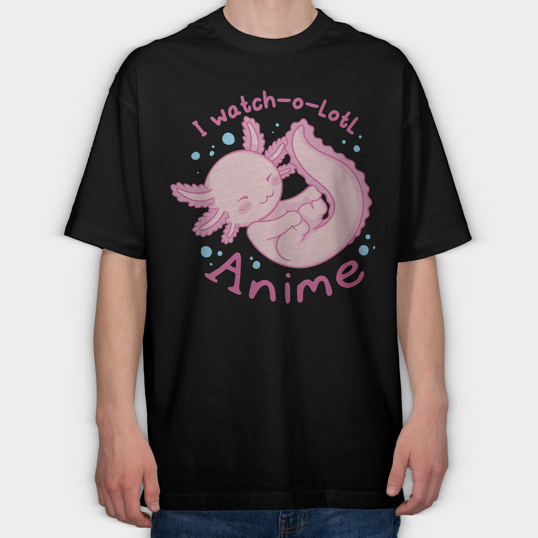 Cute Baby Axolotl Anime I Whatch O Lotl, Tricou Oversize Barbati (Unisex)