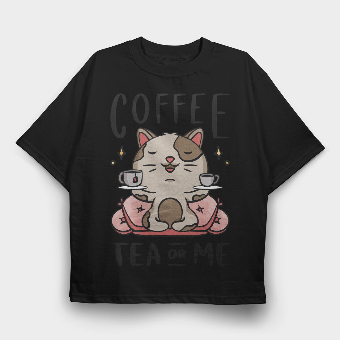 Cute Coffee Tea Cat Bar, Tricou Oversize Barbati (Unisex)