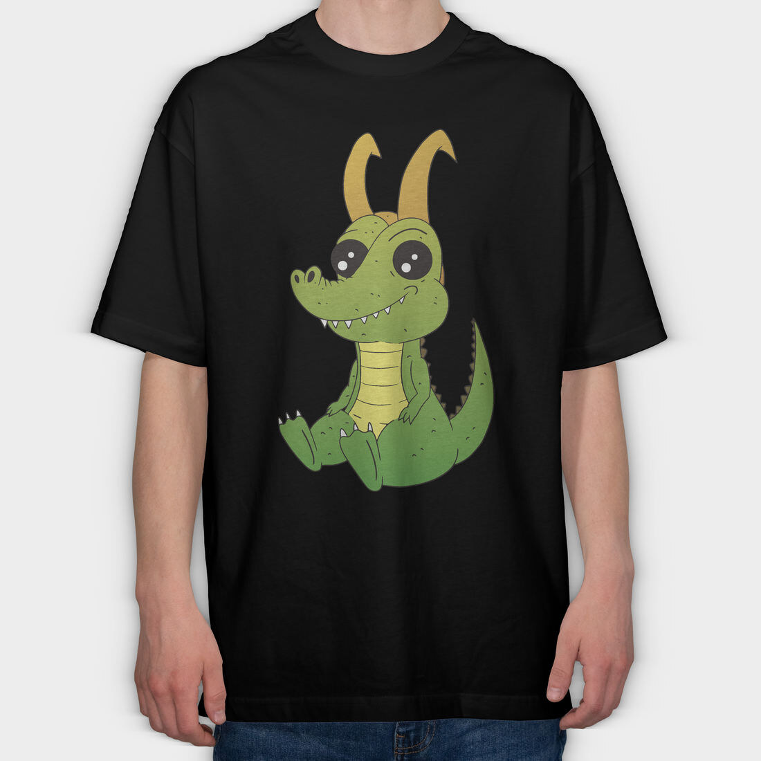 Cute Horned Crocodile Golden Horns, Tricou Oversize Barbati (Unisex)