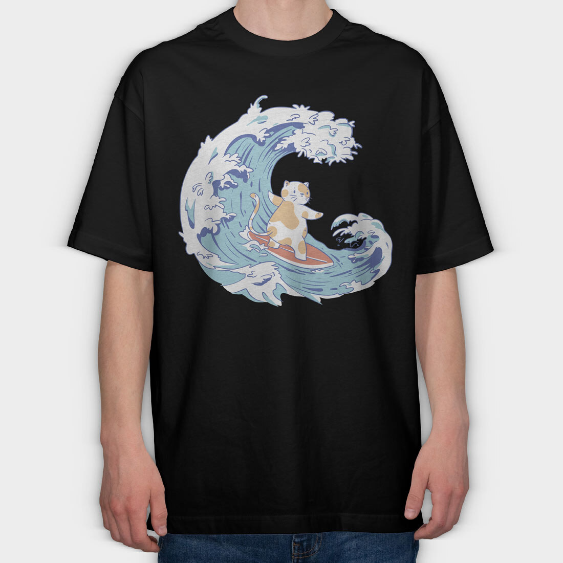 Cute Surfer Cat, Tricou Oversize Barbati (Unisex)