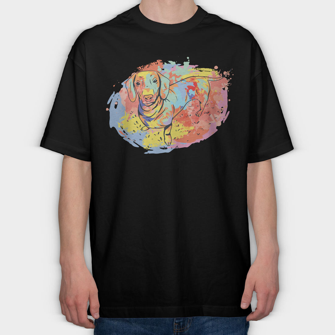 Dachshund Watercolor, Tricou Oversize Barbati (Unisex)