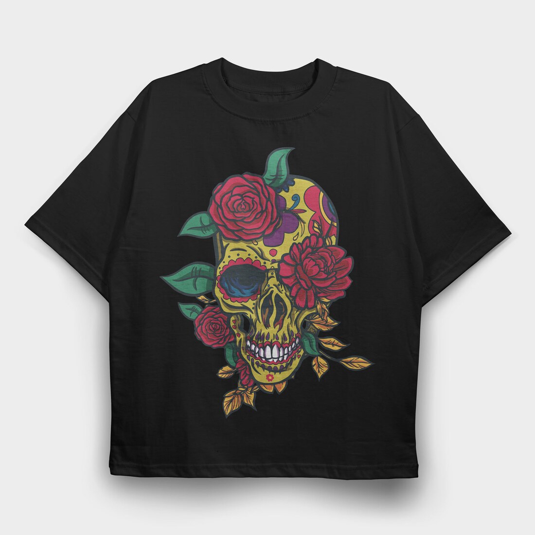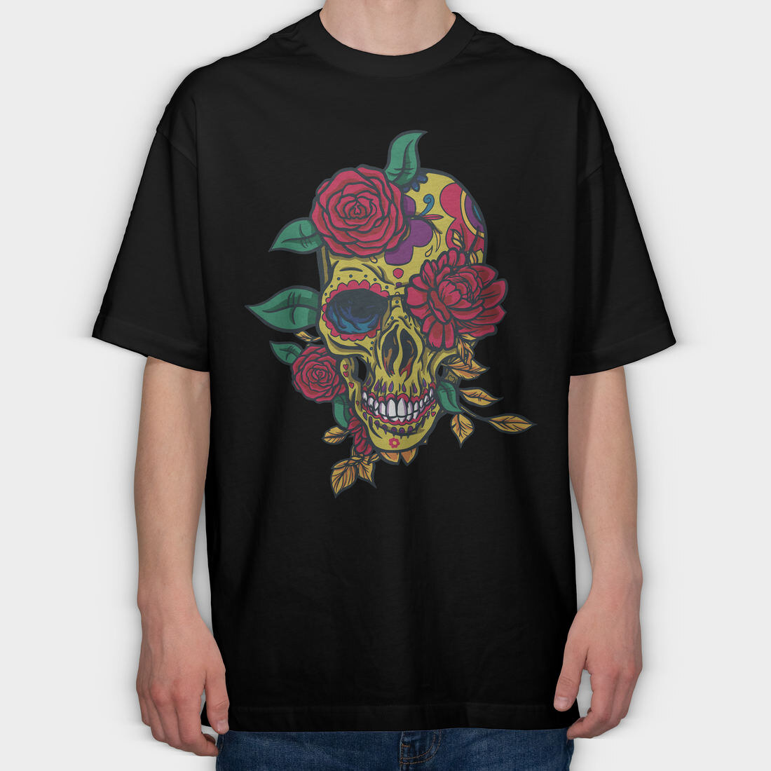 Day Of The Dead Skull With Roses, Tricou Oversize Barbati (Unisex)