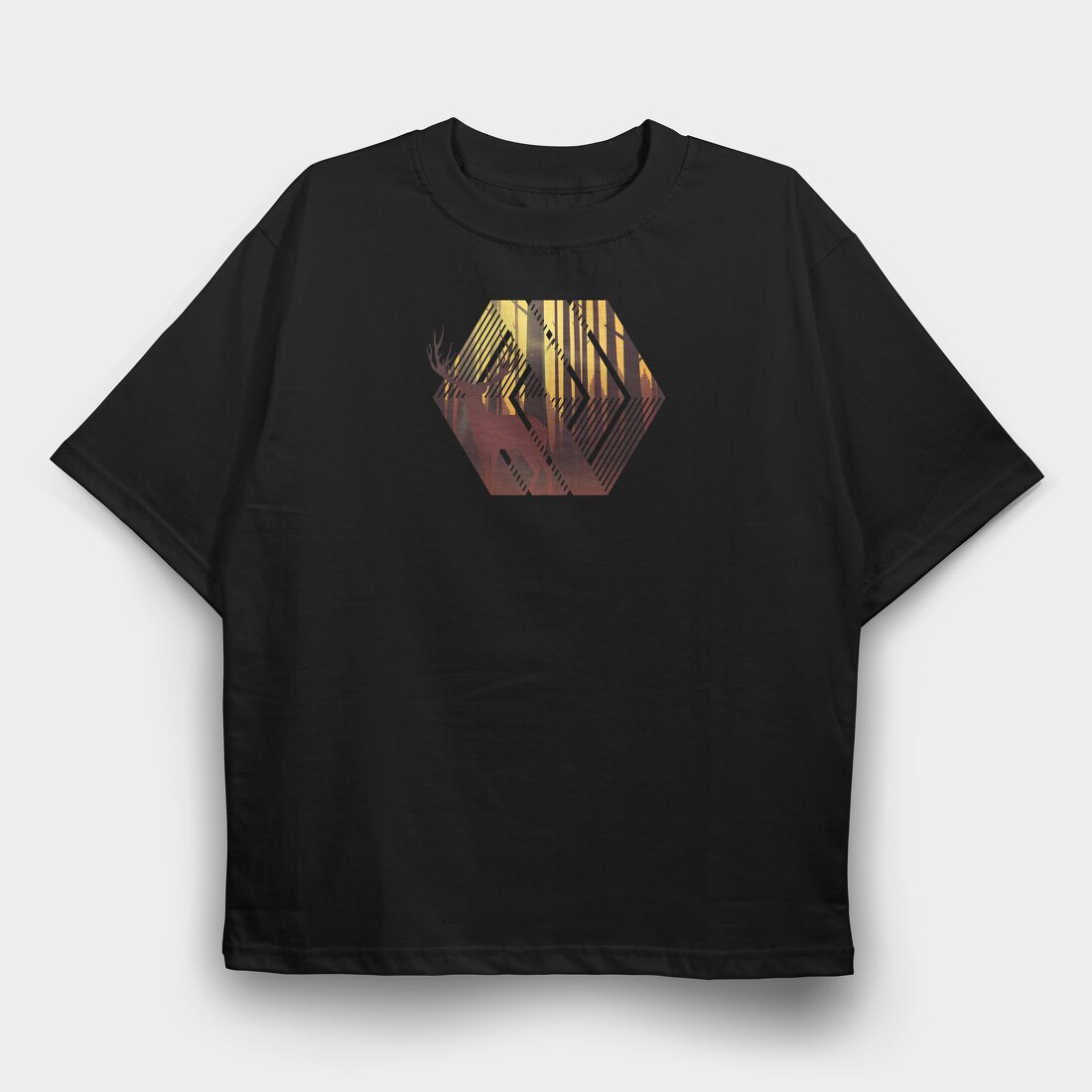 Deer Illustration Geometric Forest, Tricou Oversize Barbati (Unisex)