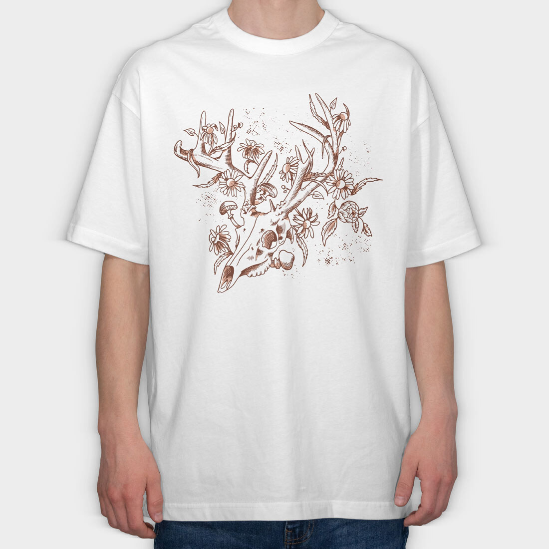 Deer Skull Flowers, Tricou Oversize Barbati (Unisex)