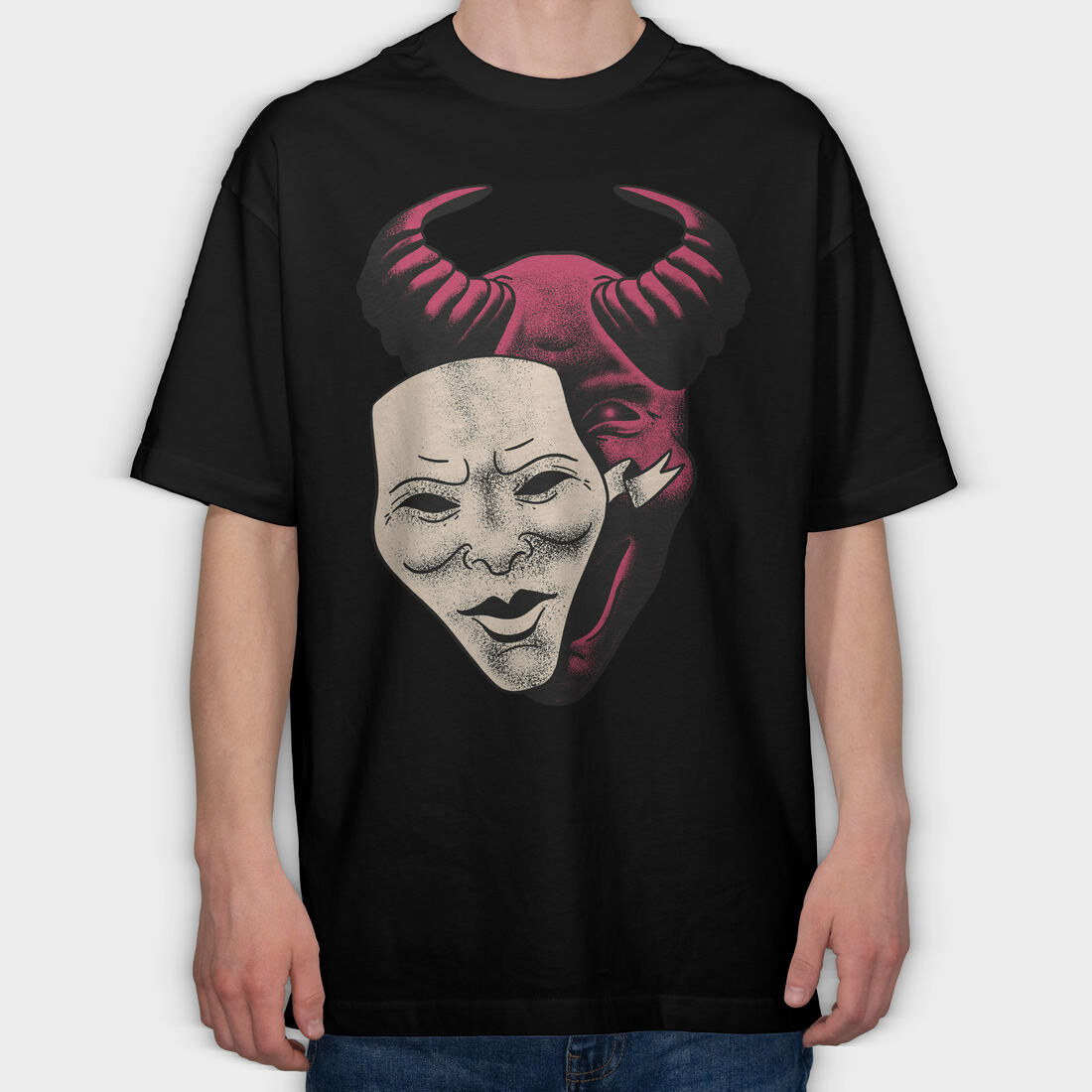 Demon And Mask Halloween, Tricou Oversize Barbati (Unisex)