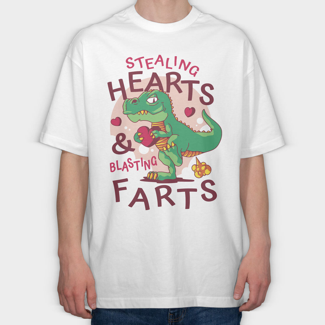 Dino Hearts Farts, Tricou Oversize Barbati (Unisex)