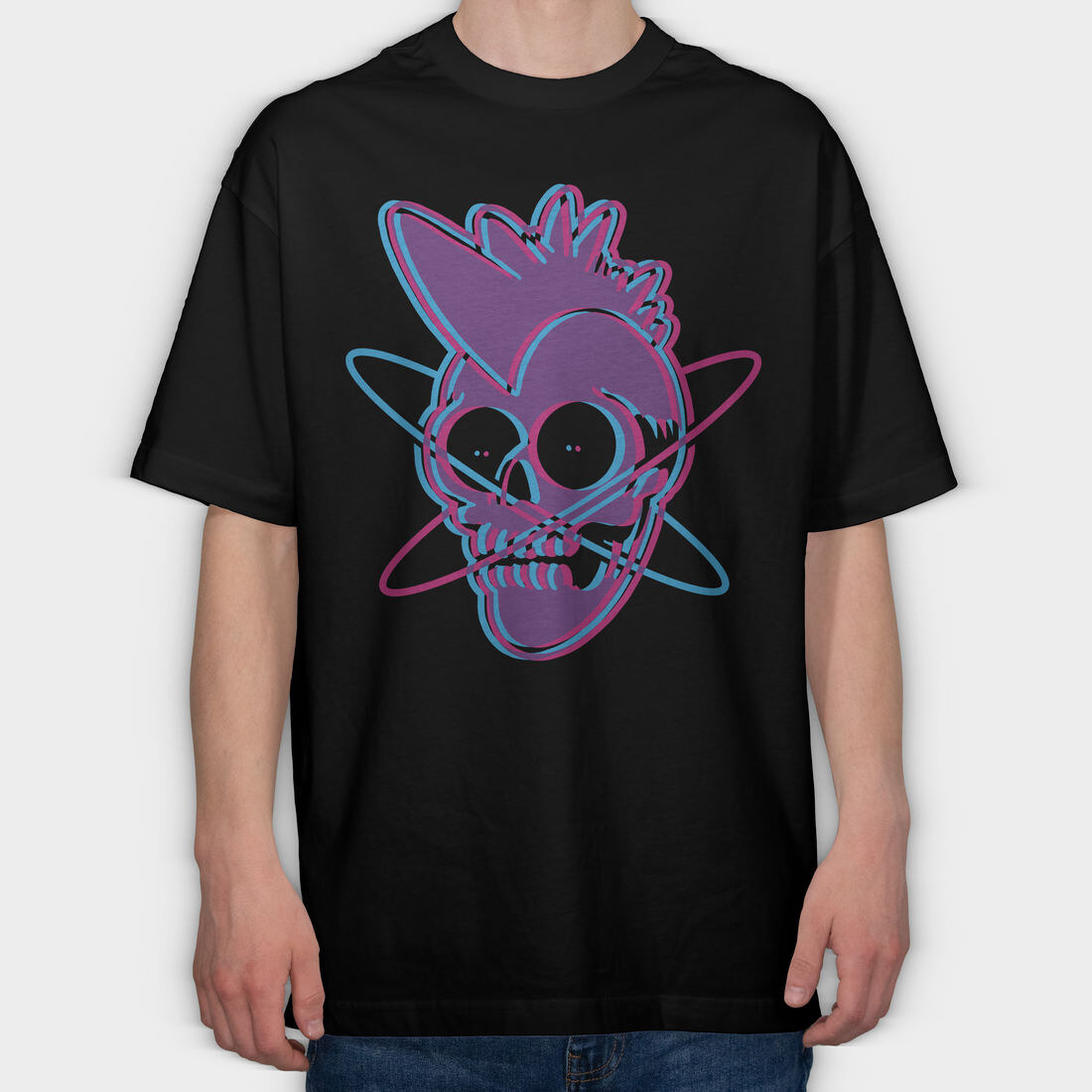 Distorted Punk Sull Cyan Magenta Skull, Tricou Oversize Barbati (Unisex)