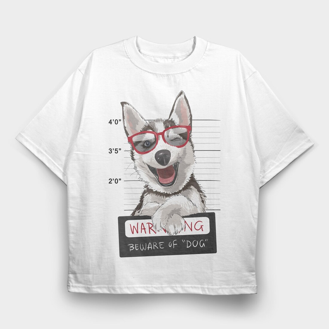 Dog Mugshot Warning, Tricou Oversize Barbati (Unisex)