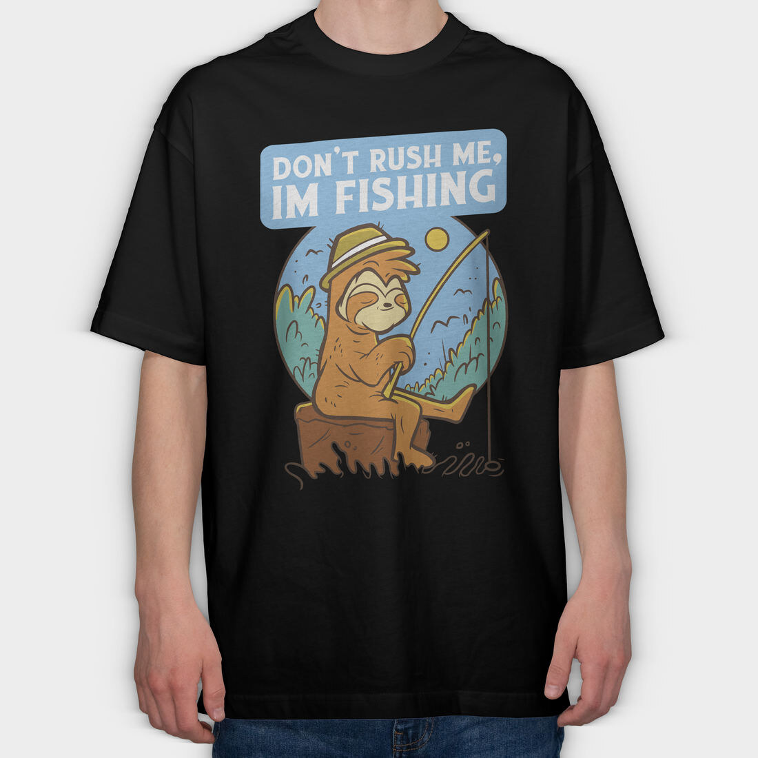 Don T Rush Me Fishing Sloth, Tricou Oversize Barbati (Unisex)