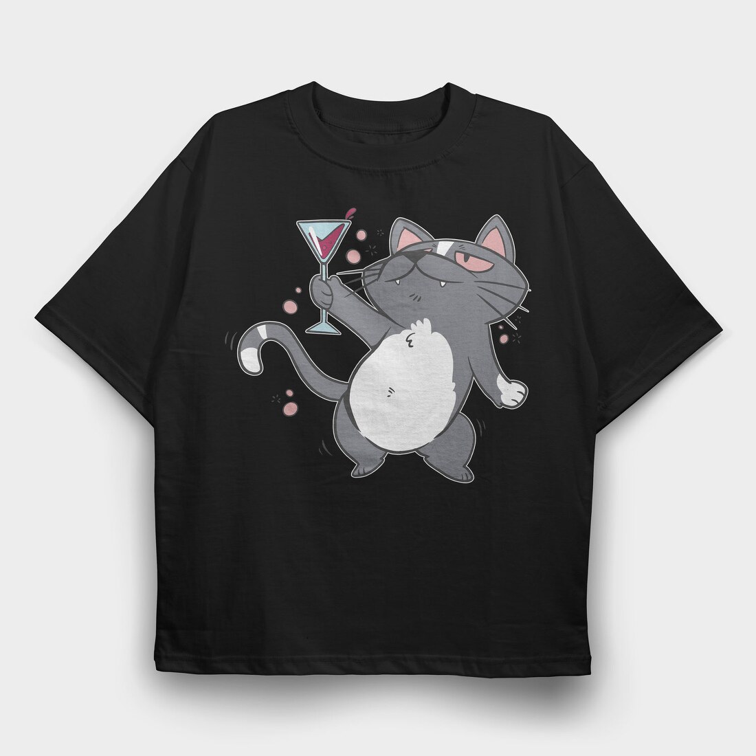 Drunk Cat With Drink, Tricou Oversize Barbati (Unisex)