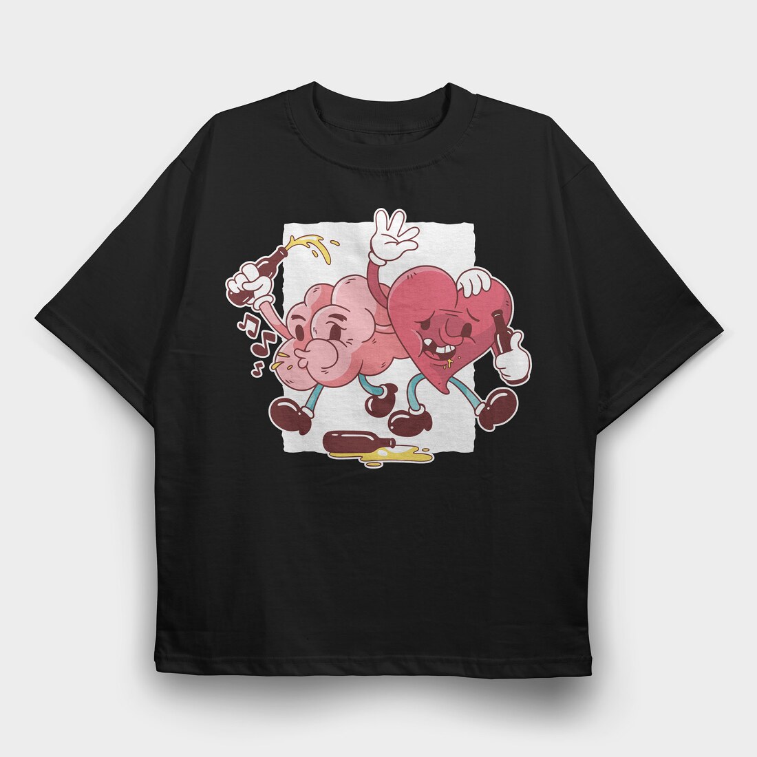 Drunk Heart And Brain, Tricou Oversize Barbati (Unisex)