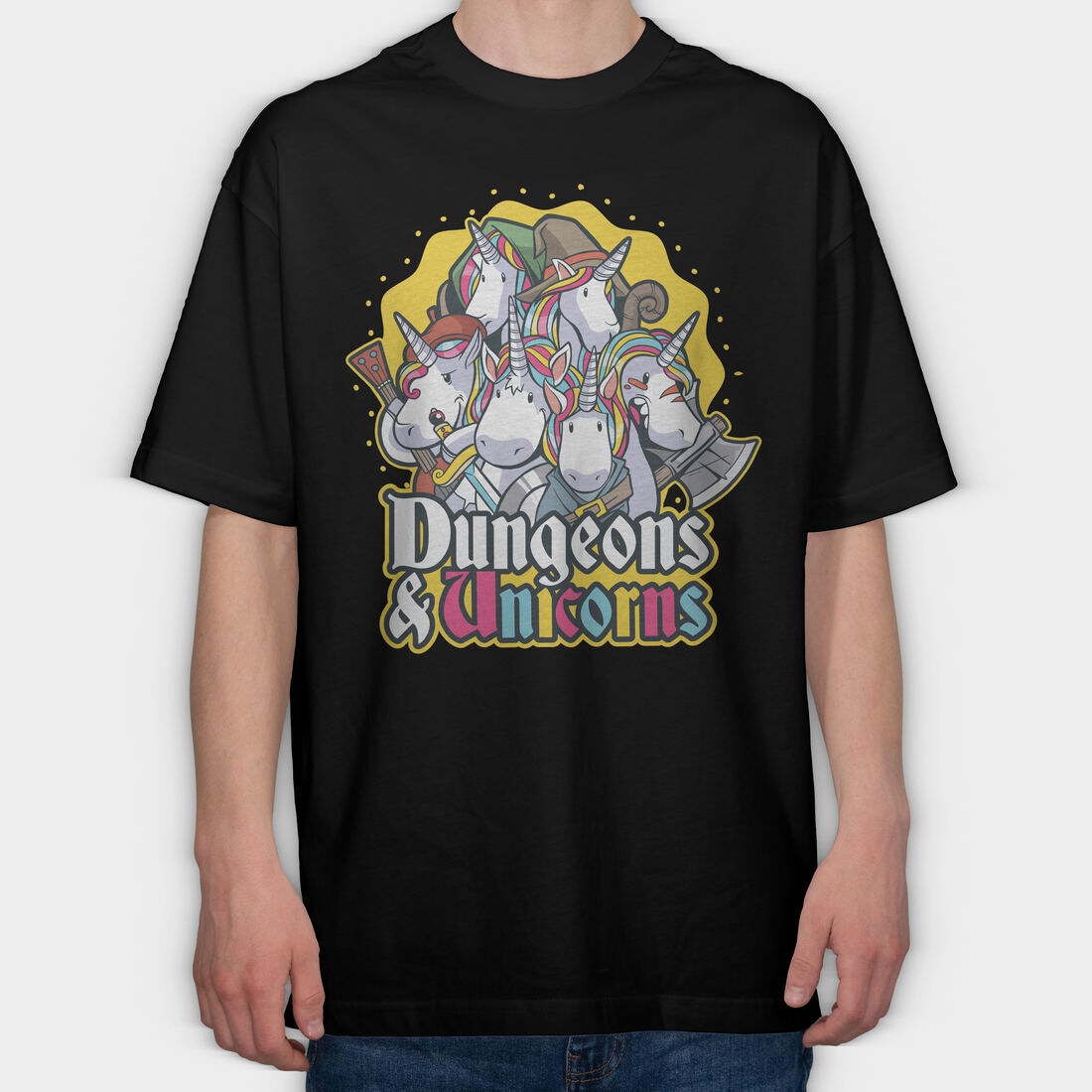 Dungeons Unicorns, Tricou Oversize Barbati (Unisex)