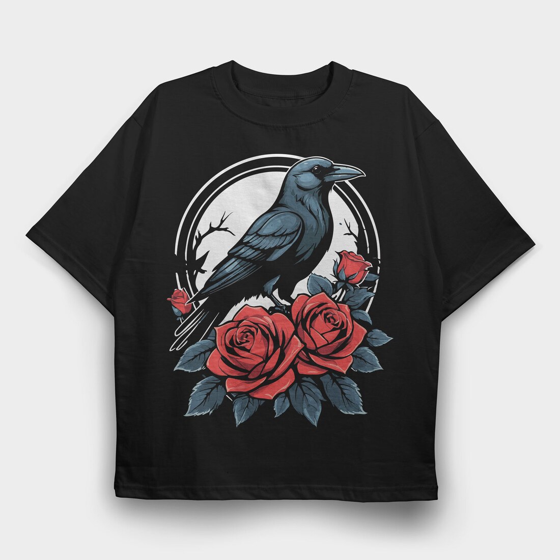 Enigmatic Crow And Roses, Tricou Oversize Barbati (Unisex)