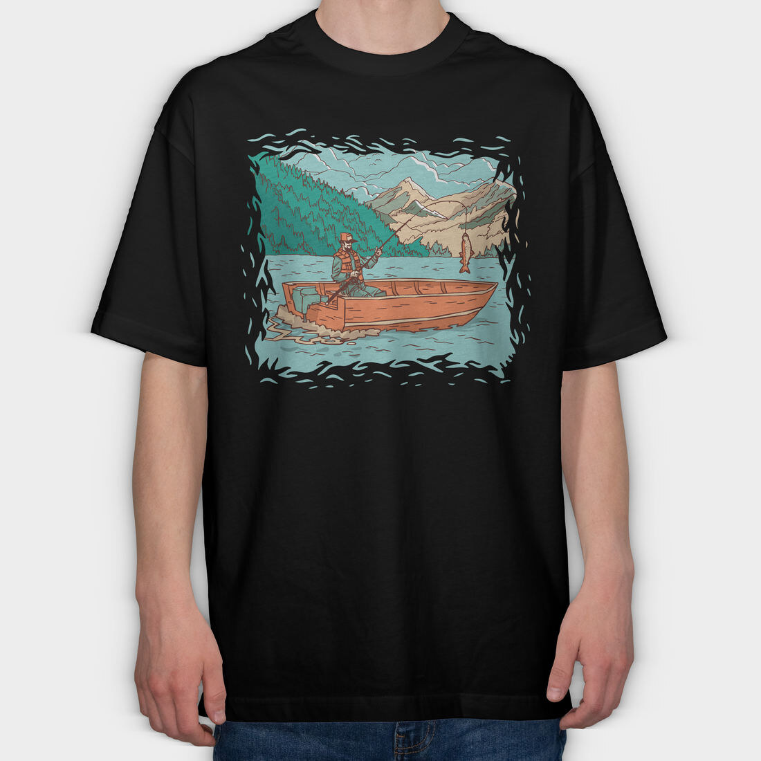 Fisherman In Boat, Tricou Oversize Barbati (Unisex)