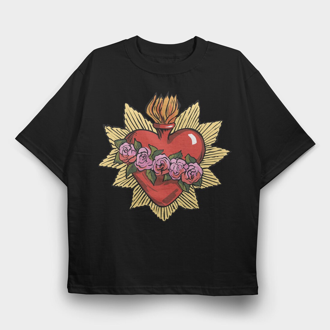 Flaming Heart Roses, Tricou Oversize Barbati (Unisex)