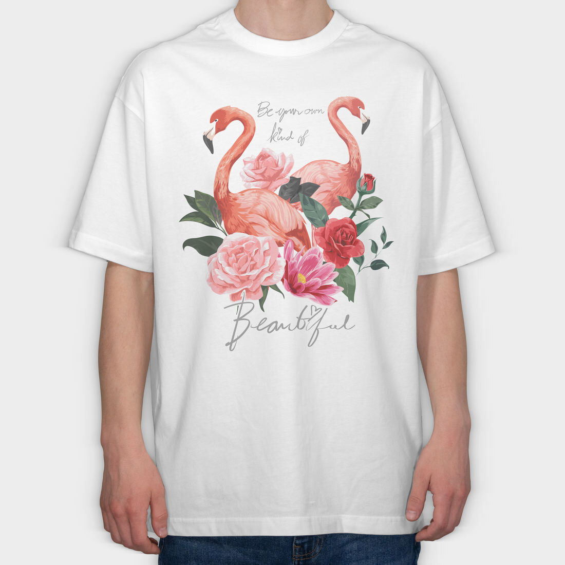 Flamingo Rose Beauty, Tricou Oversize Barbati (Unisex)