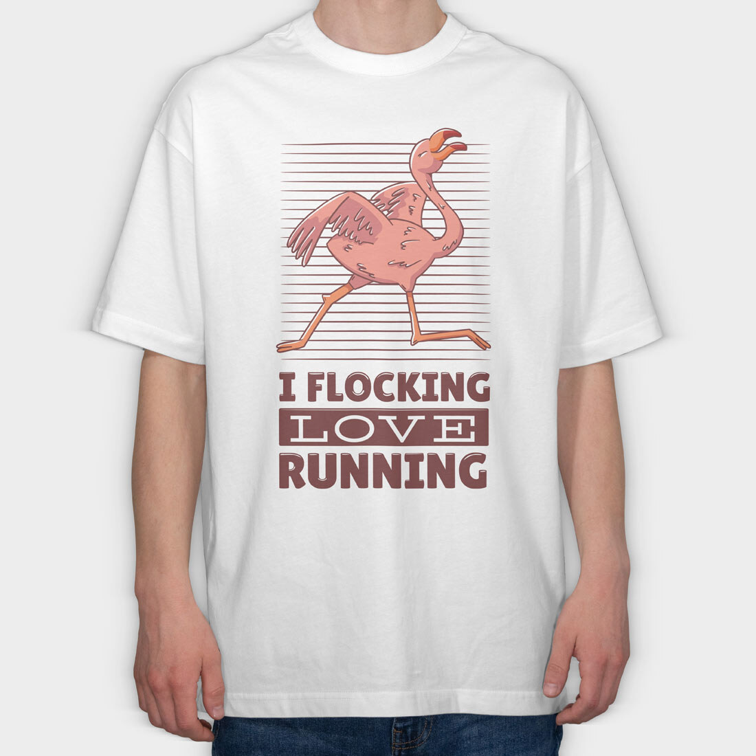 Flamingo Running, Tricou Oversize Barbati (Unisex)