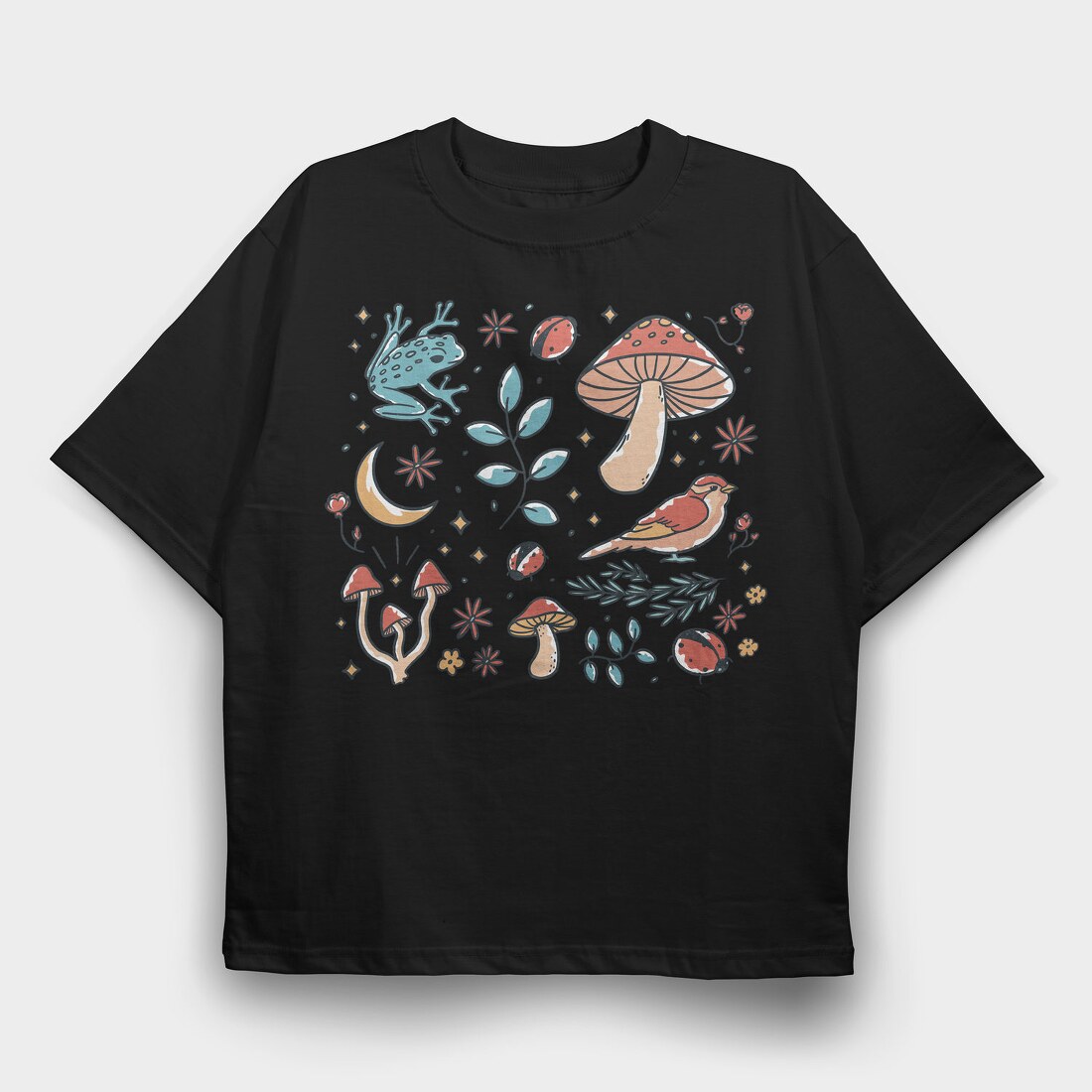 Forest Elements Mushroom Bird Frog, Tricou Oversize Barbati (Unisex)