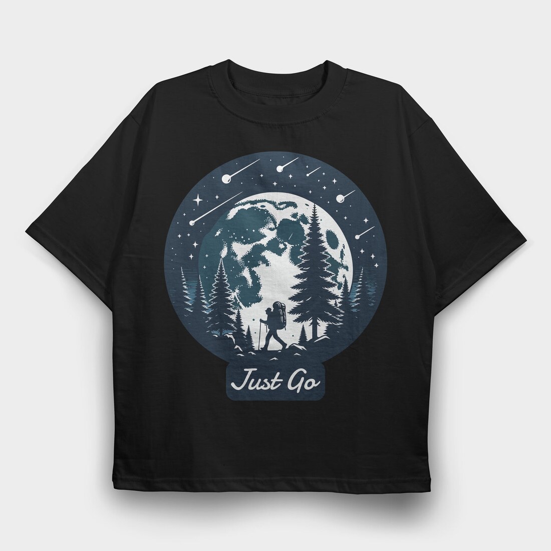 Forest Night Hike Hiking Moon, Tricou Oversize Barbati (Unisex)