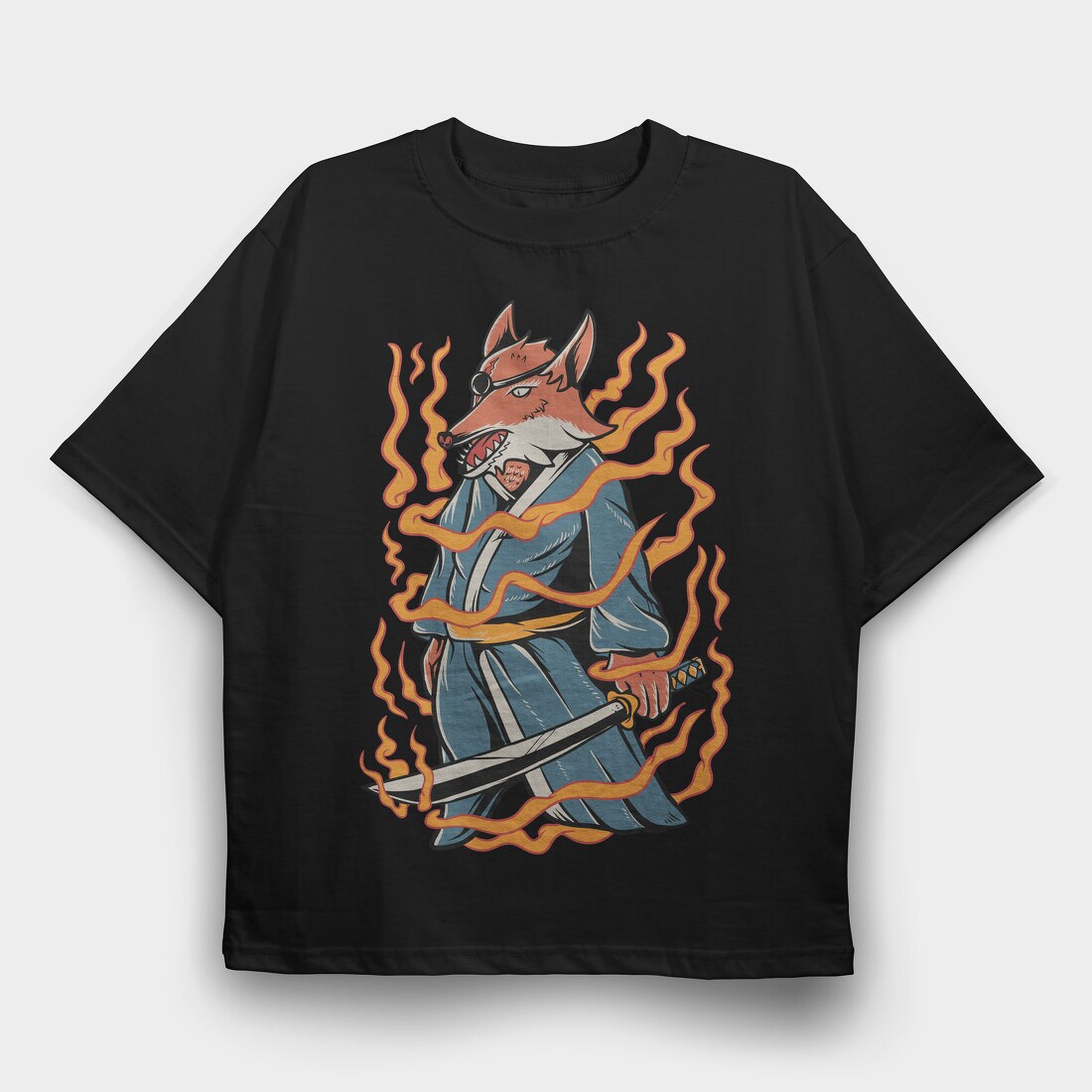 Fox Samurai, Tricou Oversize Barbati (Unisex)