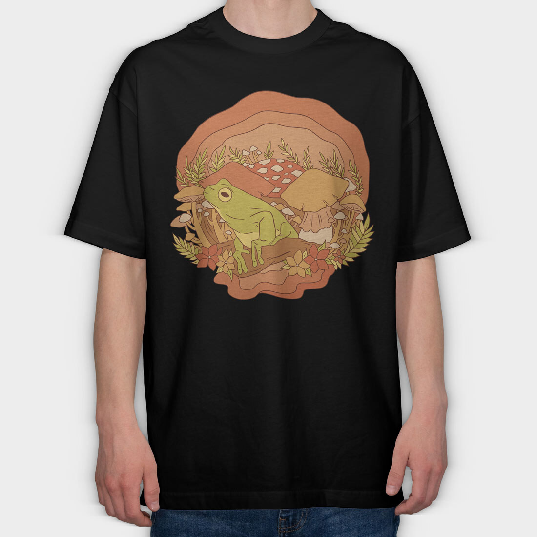 Frog and Mushrooms Vintage, Tricou Oversize Barbati (Unisex)