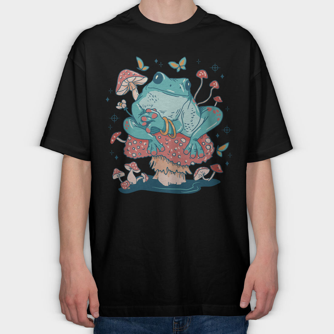 Frog In A Mushroom Cottagecore Pillow, Tricou Oversize Barbati (Unisex)