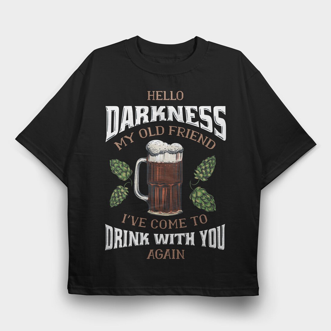 Funny Melancholy Beer Darkness My Old Friend Drinking Quote, Tricou Oversize Barbati (Unisex)